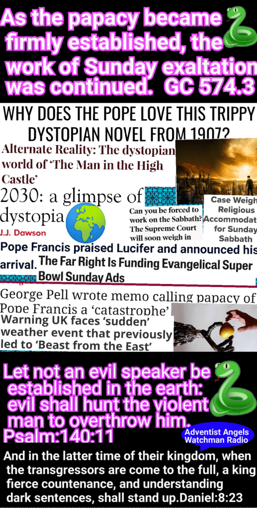 A time is coming when the law of God is, in a special sense, to be made void in our land. The rulers of our nation will, by legislative enactments, enforce the Sunday law, and thus God’s people be brought into great peril. When our nation, in its legislative councils, shall enact laws to bind the consciences of men in regard to their religious privileges, enforcing Sunday observance, and bringing oppressive power to bear against those who keep the seventh-day Sabbath, the law of God will, to all intents and purposes, be made void in our land; and national apostasy will be followed by national ruin. We see that those who are now keeping the commandments of God need to bestir themselves, that they may obtain the special help which God alone can give them. They should work more earnestly to delay as long as possible the threatened calamity. If, in our land of boasted freedom, a Protestant government should sacrifice every principle which enters into its Constitution, and propagate papal falsehood and delusion, well may we plead, “It is time for thee, Lord, to work, for they have made void thy law.” Some may think that because it has been revealed in prophecy that our nation shall restrict the consciences of men, it must surely come; and that if we make an effort to preserve our liberty, we shall be acting the part of unfaithful servants, and thus come under the condemnation of God. This peril now threatens the people of God; and what are we going to do? RH December 18, 1888, Art. A, par. 6 – RH December 18, 1888, Art. A, par. 7