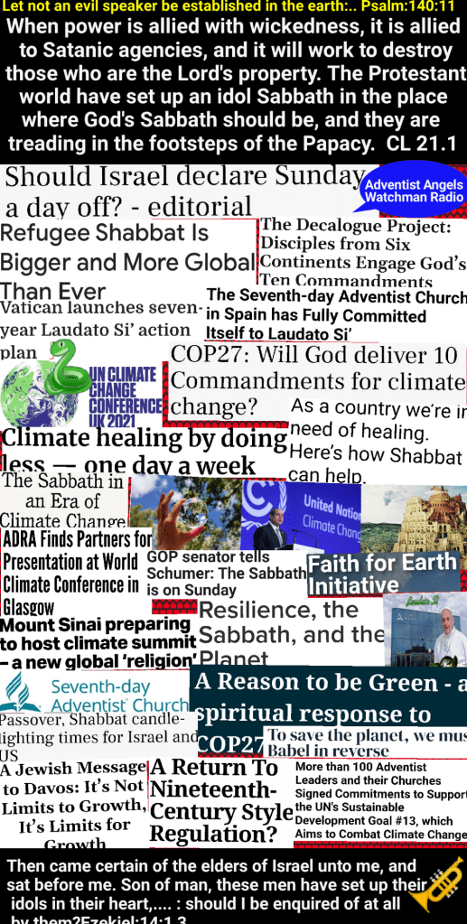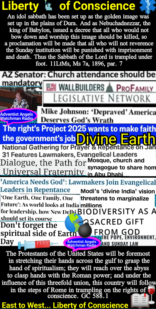 When the leading churches of the United States, uniting upon such points of doctrine as are held by them in common, shall influence the state to enforce their decrees and to sustain their institutions, then Protestant America will have formed an image of the Roman hierarchy, and the infliction of civil penalties upon dissenters will inevitably result…. The enforcement of Sundaykeeping on the part of Protestant churches is an enforcement of the worship of the papacy…. In the very act of enforcing a religious duty by secular power, the churches would themselves form an image to the beast; hence the enforcement of Sundaykeeping in the United States would be an enforcement of the worship of the beast and his image.—The Great Controversy, 445, 448, 449 (1911). LDE 131.1 – LDE 131.3