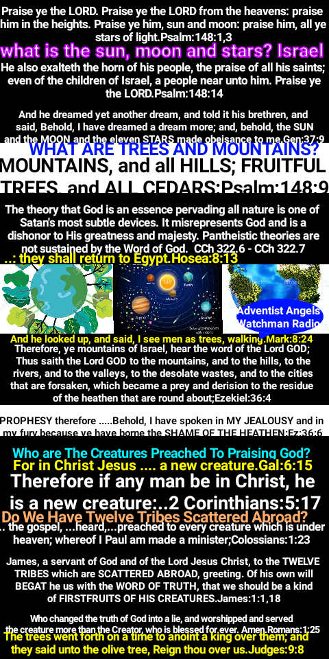 No error accepted by the Christian world strikes more boldly against the authority of Heaven, none is more directly opposed to the dictates of reason, none is more pernicious in its results, than the modern doctrine, so rapidly gaining ground, that God’s law is no longer binding upon men. Every nation has its laws, which command respect and obedience; no government could exist without them; and can it be conceived that the Creator of the heavens and the earth has no law to govern the beings He has made? Suppose that prominent ministers were publicly to teach that the statutes which govern their land and protect the rights of its citizens were not obligatory—that they restricted the liberties of the people, and therefore ought not to be obeyed; how long would such men be tolerated in the pulpit? But is it a graver offense to disregard the laws of states and nations than to trample upon those divine precepts which are the foundation of all government? GC 583.1 – GC 584.1″ quoted from The Great Controversy Between Christ and Satan by Ellen G White. The Leaders are saying we don’t need another eye to see the impacts if climate change, they assert we don’t need God to direct us who is having the problem. Isaiah 24 leading in verses four and five asserts that the whole world is defiled for forsaking the Commandments of God. O Earth Earth Earth hear the Word of the Lord.