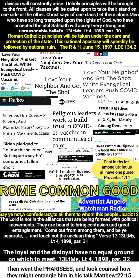 It appears to me that Spiritual Israel is following in the footsteps of historical Israel, and she is dabbling in rife apostasy. Never in all of human history have good apples made bad apples good. Always, and I mean always, bad apples make good apples bad. Period. If the Seventh Day Adventist Church, from the top down, does not put an end to this spiritual ecumenical madness, many of our people are going to be lost for eternity.