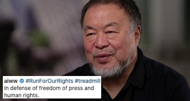 As part of the campaign, Ai filmed himself running on the treadmill given to him by Assange in 2016 in support of human rights and freedom of the press.