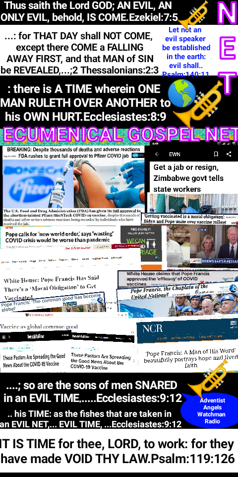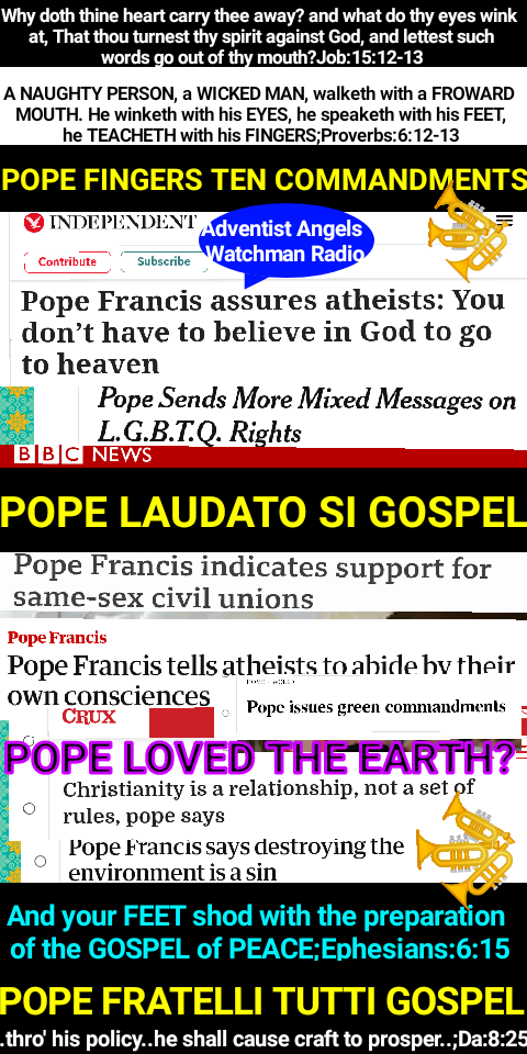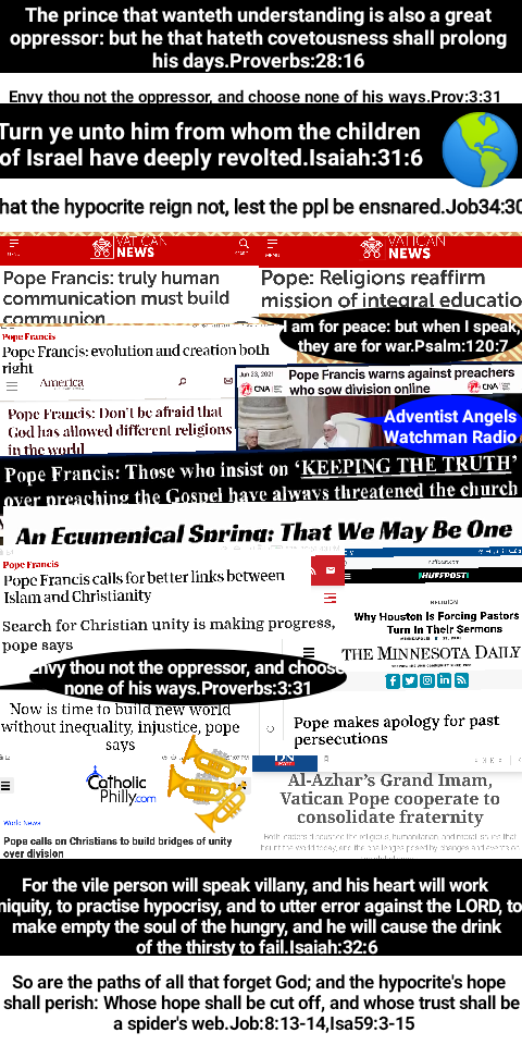 A big question whose teachings or wine are these making drunk the world? Roman Catholic Principles. This confederations are bringing evil results. Like shall unite with like, filthy with filthy, holy with holy for the book of Daniel 2:42-44 gives a mingling of nations which will not stick together. What is the aim of the papacy? To unite all men to himself and nations to foster his agenda!. That shall not come to pass for Prophecy is evident. Laws which are antihuman will be implemented to cut off Individual people and nations who fail to cooperate with this doctrines and calls for unity. The Pope is seen as a “guardian angel like Jesus Christ in the wilderness”