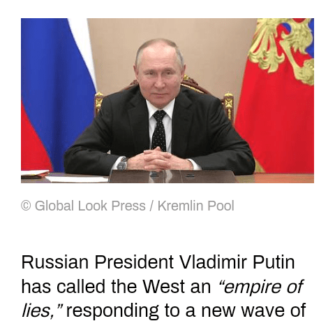 Russian President Vladimir Putin has called the West an “empire of lies,” responding to a new wave of sanctions that hit the country over its special military operation in neighboring Ukraine.