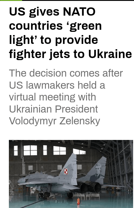 US gives NATO countries ‘green light’ to provide fighter jets to Ukraine