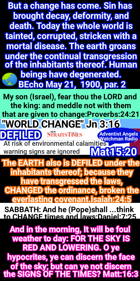 The miracle-working power manifested through spiritualism will exert its influence against those who choose to obey God rather than men. Communications from the spirits will declare that God has sent them to convince the rejecters of Sunday of their error, affirming that the laws of the land should be obeyed as the law of God. They will lament the great wickedness in the world and second the testimony of religious teachers that the degraded state of morals is caused by the desecration of Sunday. Great will be the indignation excited against all who refuse to accept their testimony.