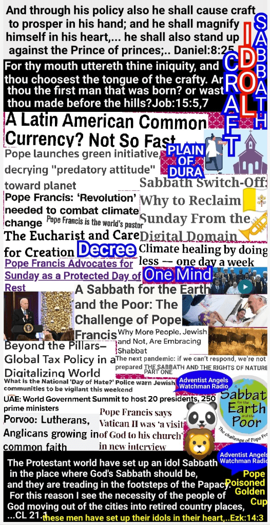 History will be repeated. False religion will be exalted. The first day of the week, a common working day, possessing no sanctity whatever, will be set up as was the image of Babylon. All nations and tongues and peoples will be commanded to worship this spurious sabbath…. The decree enforcing the worship of this day is to go forth to all the world.—The S.D.A. Bible Commentary 7:976 (1897).