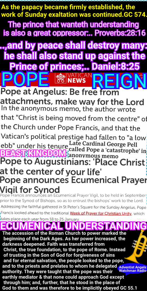 God’s word has given warning of the impending danger; let this be unheeded, and the Protestant world will learn what the purposes of Rome really are, only when it is too late to escape the snare. She is silently growing into power. Her doctrines are exerting their influence in legislative halls, in the churches, and in the hearts of men. She is piling up her lofty and massive structures in the secret recesses of which her former persecutions will be repeated. Stealthily and unsuspectedly she is strengthening her forces to further her own ends when the time shall come for her to strike. All that she desires is vantage ground, and this is already being given her. We shall soon see and shall feel what the purpose of the Roman element is. Whoever shall believe and obey the word of God will thereby incur reproach and persecution. GC 580.1 – GC 581.2