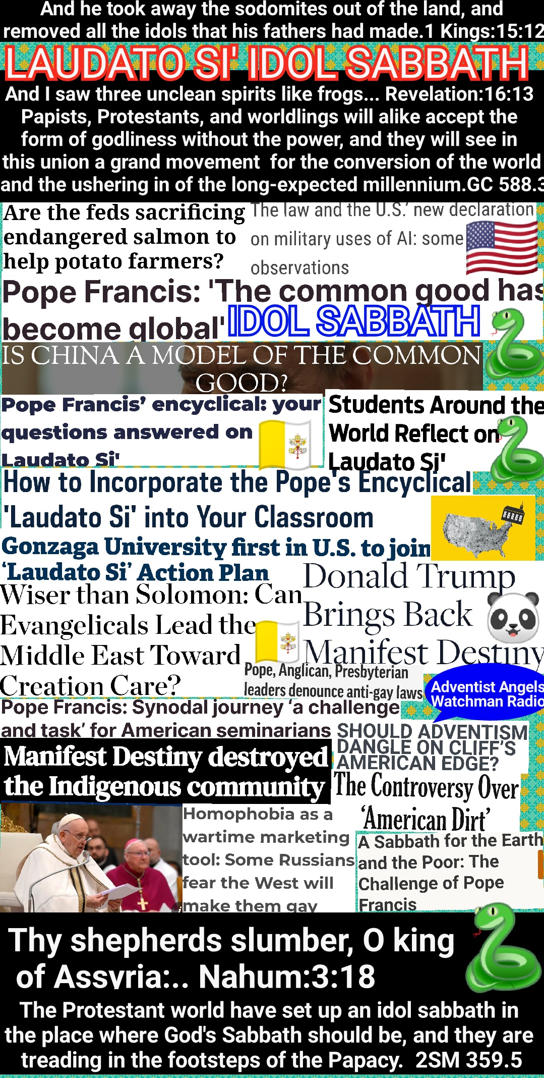 Since the middle of the nineteenth century, students of prophecy in the United States have presented this testimony to the world. In the events now taking place is seen a rapid advance toward the fulfillment of the prediction. With Protestant teachers there is the same claim of divine authority for Sundaykeeping, and the same lack of Scriptural evidence, as with the papal leaders who fabricated miracles to supply the place of a command from God. The assertion that God’s judgments are visited upon men for their violation of the Sunday-sabbath, will be repeated; already it is beginning to be urged. And a movement to enforce Sunday observance is fast gaining ground. GC 578.2 – GC 579.1