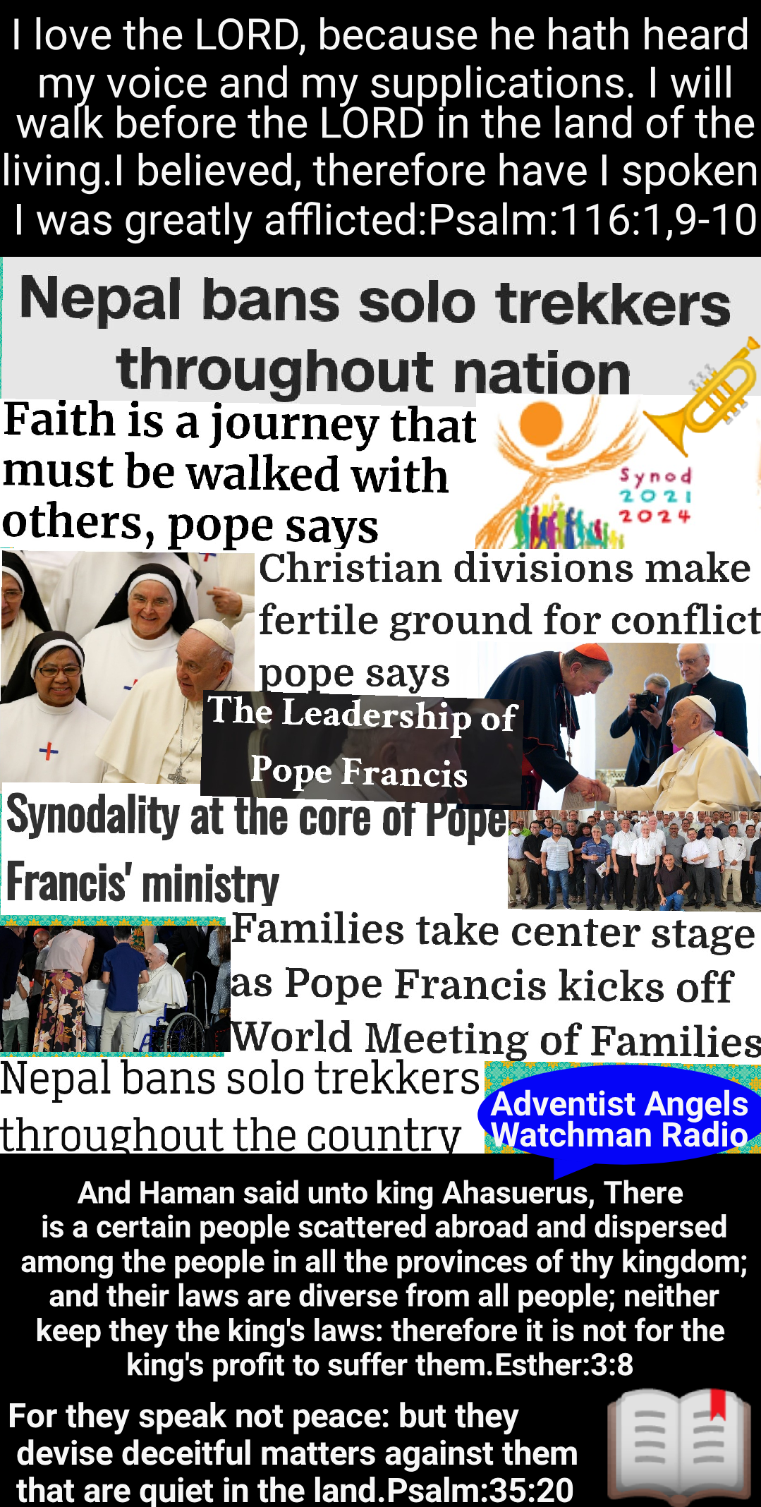 http://adventistangelswatchmanradio.com/2023/03/14/retracing-rome-ladders-nepal-bans-solo-trekkers-throughout-the-country-faith-is-a-journey-that-must-be-walked-with-others-pope-says/