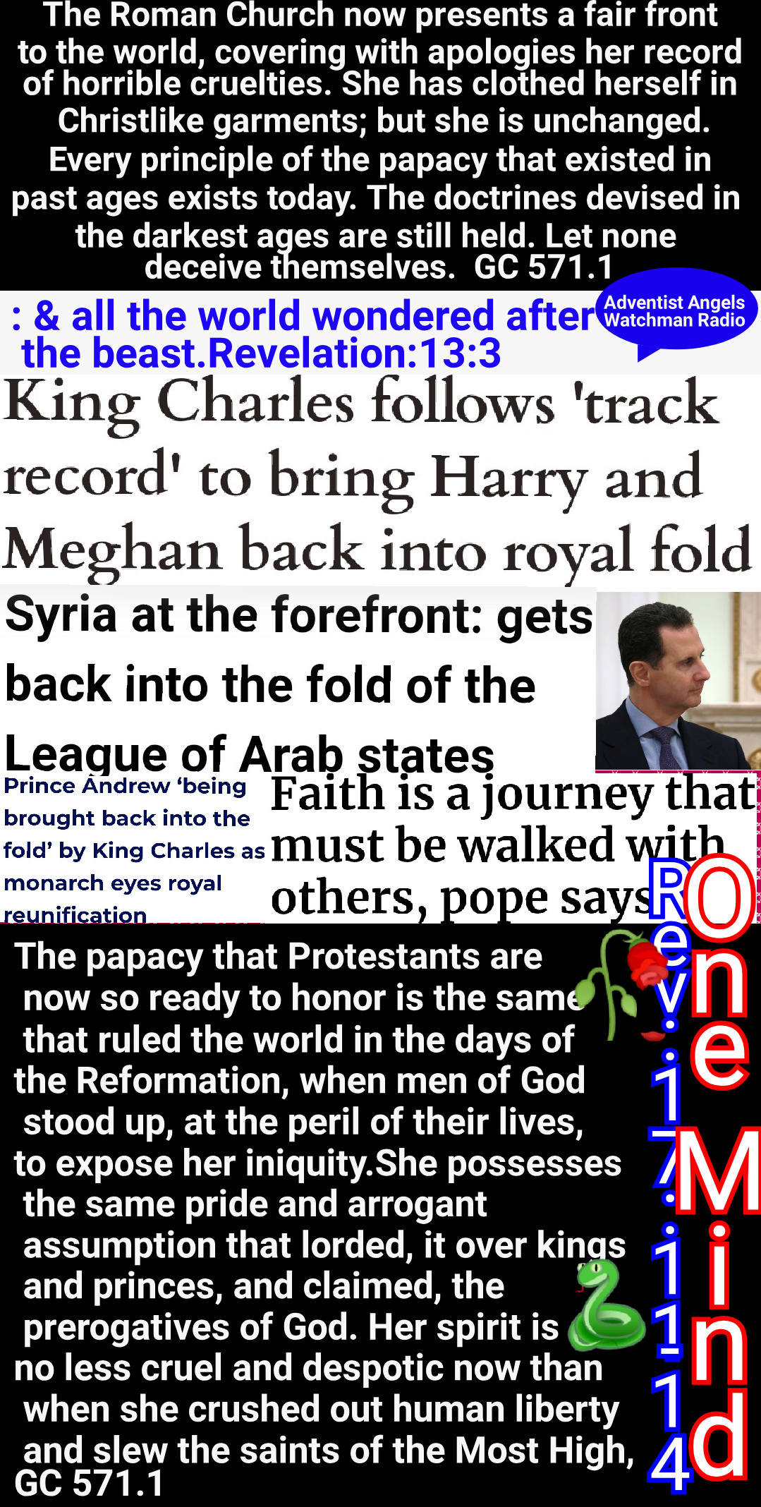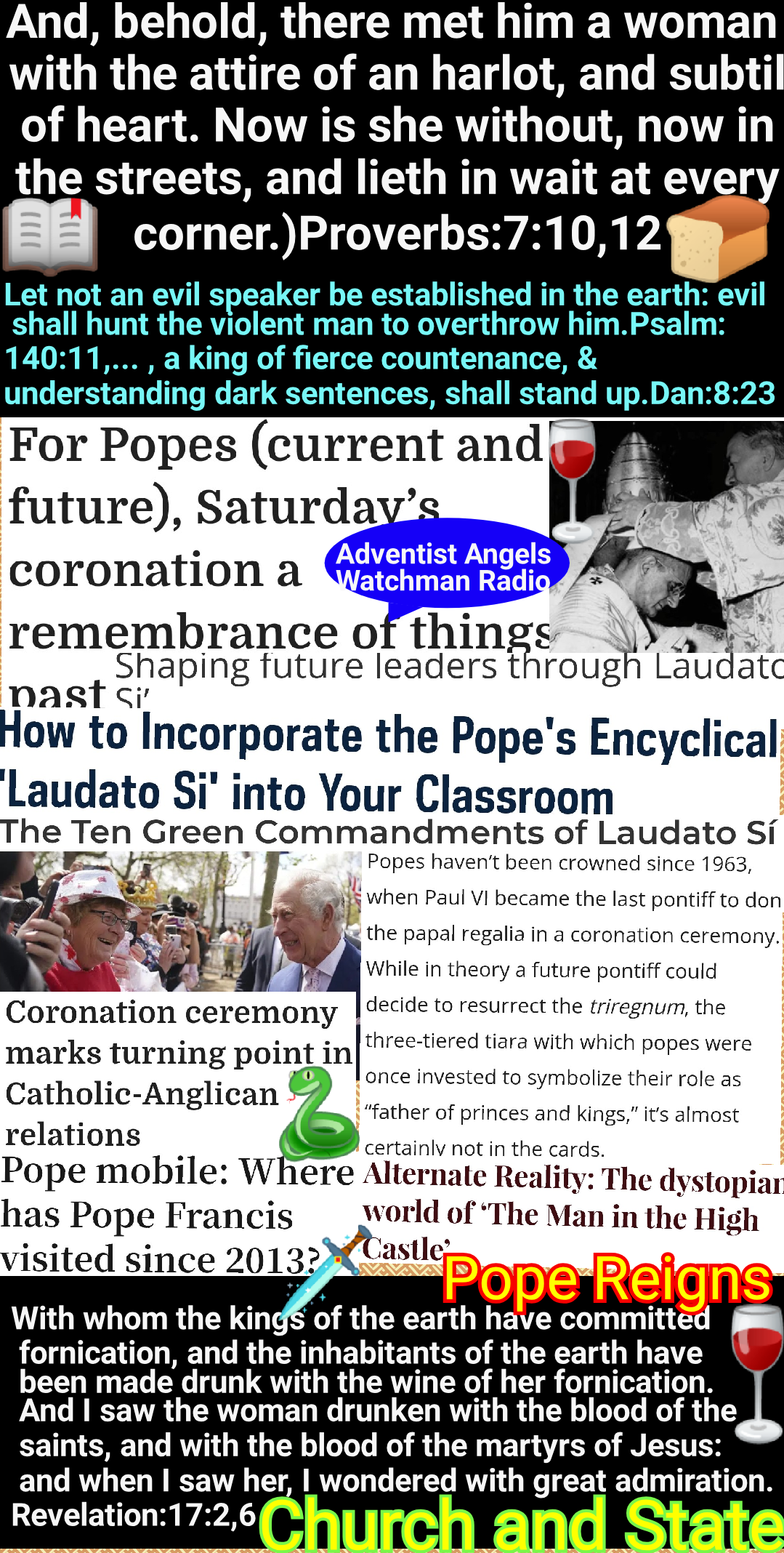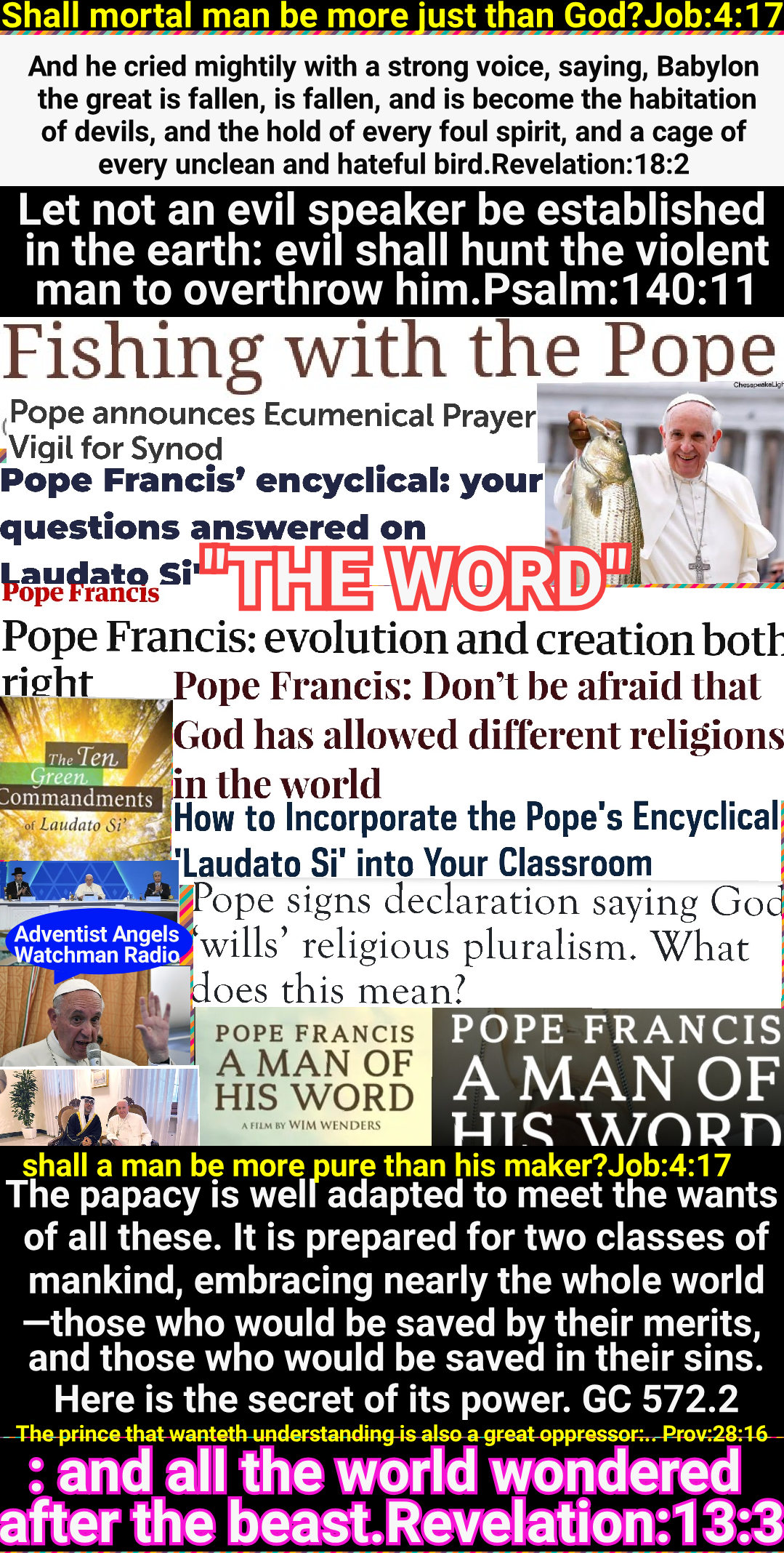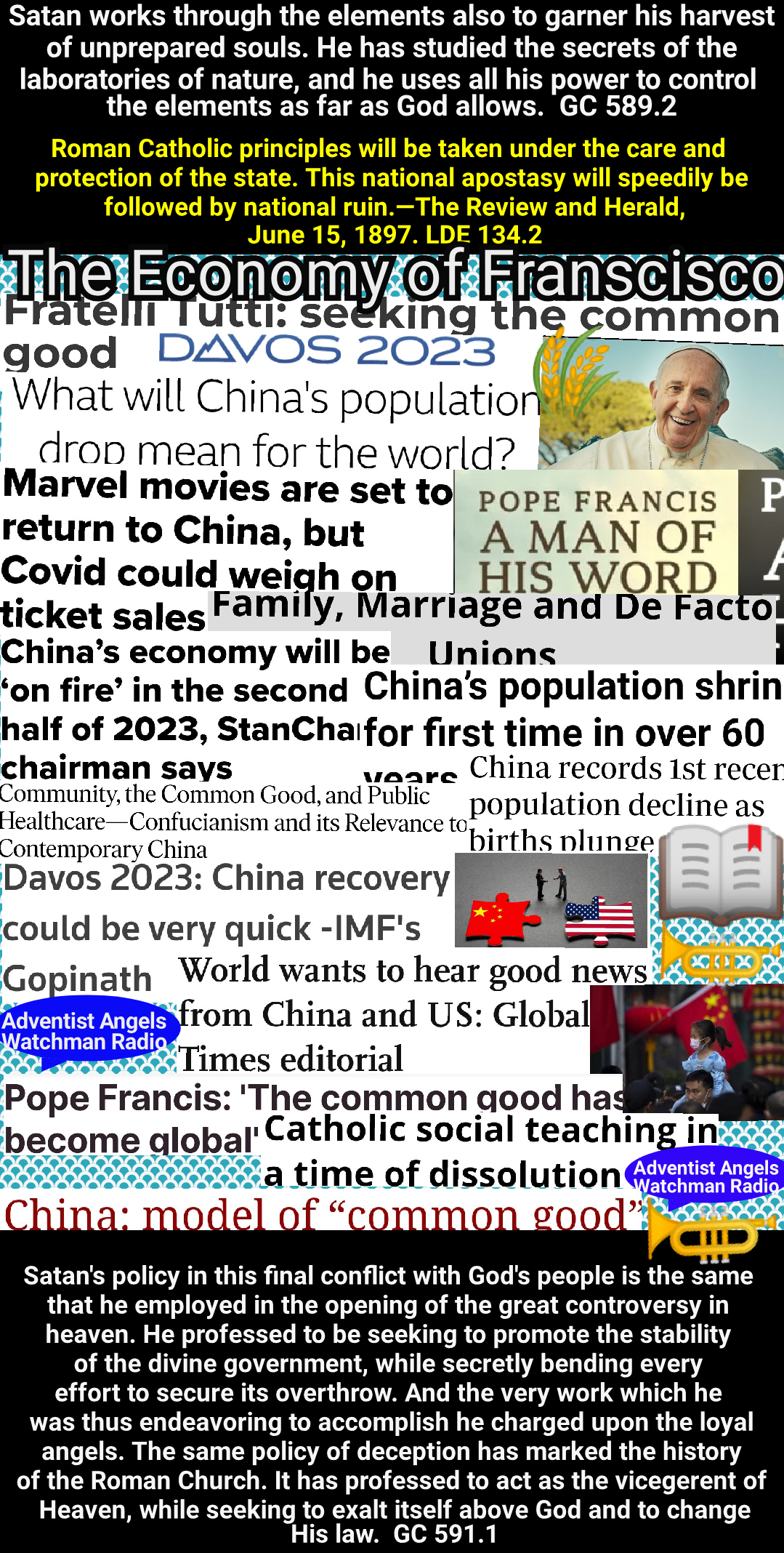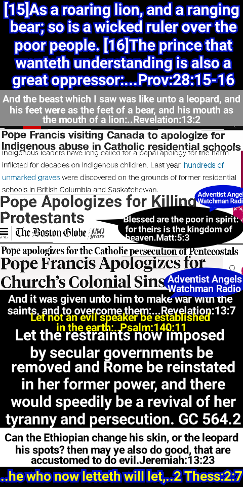 Satan’s policy in this final conflict with God’s people is the same that he employed in the opening of the great controversy in Heaven. He professed to be seeking to promote the stability of the divine government, while secretly bending every effort to secure its overthrow. And the very work which he was thus endeavoring to accomplish, he charged upon the loyal angels. The same policy of deception has marked the history of the Romish Church. It has professed to act as the vicegerent of Heaven, while seeking to exalt itself above God, and to change his law. Under the rule of Rome, those who suffered death for their fidelity to the gospel were denounced as evil-doers; they were declared to be in league with Satan; and every possible means was employed to cover them with reproach, to cause them to appear, in the eyes of the people, and even to themselves, as the vilest of criminals. So it will be now. While Satan seeks to destroy those who honor God’s law he will cause them to be accused as law-breakers, as men who are dishonoring God, and bringing judgments upon the world.