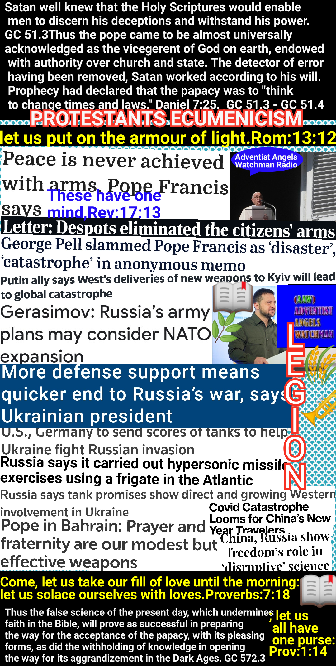 The dignitaries of church and State will unite to bribe, persuade, or compel all classes to honor the Sunday. The lack of divine authority will be supplied by oppressive enactments. Political corruption is destroying love of justice and regard for truth; and even in free America, rulers and legislators, in order to secure public favor, will yield to the popular demand for a law enforcing Sunday observance. Liberty of conscience, which has cost so great a sacrifice, will no longer be respected. In the soon-coming conflict we shall see exemplified the prophet’s words: “The dragon was wroth with the woman, and went to make war with the remnant of her seed, which keep the commandments of God, and have the testimony of Jesus Christ.” Revelation 12:17. GC88 584.2 – GC88 592.3