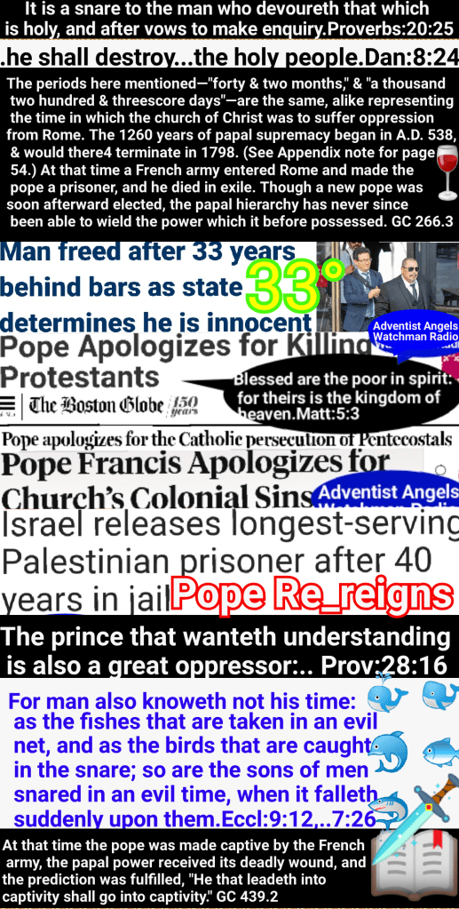 The pope claims to be the vicar of Christ; but how does his character bear comparison with that of our Saviour? Was Christ ever known to consign men to the prison or the rack because they did not pay Him homage as the King of heaven? Was His voice heard condemning to death those who did not accept Him? When He was slighted by the people of a Samaritan village, the apostle John was filled with indignation, and inquired: “Lord, wilt Thou that we command fire to come down from heaven, and consume them, even as Elias did?” Jesus looked with pity upon His disciple, and rebuked his harsh spirit, saying: “The Son of man is not come to destroy men’s lives, but to save them.” Luke 9:54, 56. How different from the spirit manifested by Christ is that of His professed vicar.
