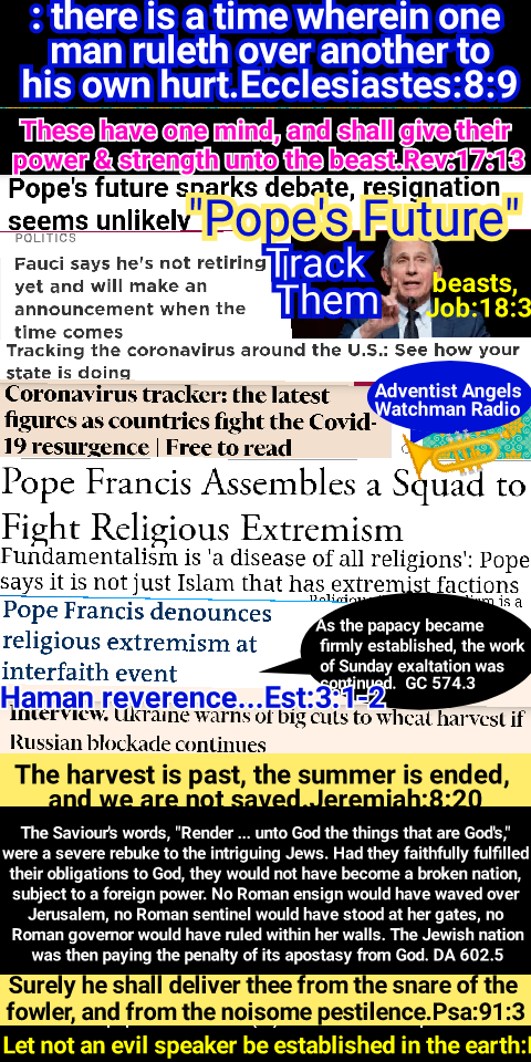 The dignitaries of church and state will unite to bribe, persuade, or compel all classes to honor the Sunday. The lack of divine authority will be supplied by oppressive enactments. Political corruption is destroying love of justice and regard for truth; and even in free America, rulers and legislators, in order to secure public favor, will yield to the popular demand for a law enforcing Sunday observance. Liberty of conscience, which has cost so great a sacrifice, will no longer be respected. In the soon-coming conflict we shall see exemplified the prophet’s words: “The dragon was wroth with the woman, and went to make war with the remnant of her seed, which keep the commandments of God, and have the testimony of Jesus Christ.” Revelation 12:17. GC 592.2 – GC 592.3