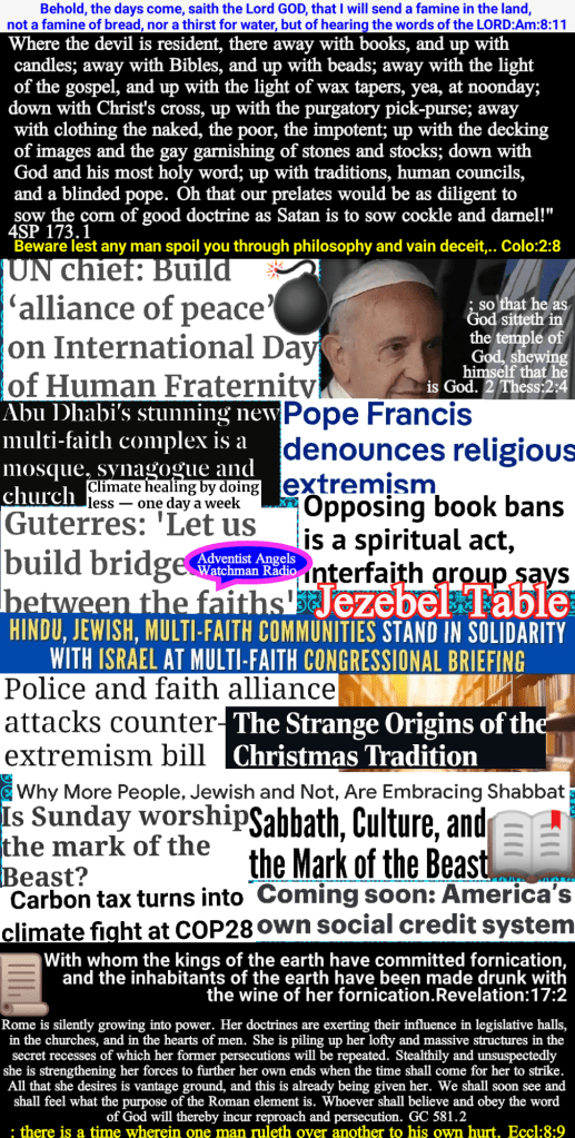 And now another scene passed before him. He had been shown the work of Satan in leading the Jews to reject Christ, while they professed to honor His Father’s law. He now saw the Christian world under a similar deception in professing to accept Christ while they rejected God’s law. He had heard from the priests and elders the frenzied cry, “Away with Him!” “Crucify Him, crucify Him!” and now he heard from professedly Christian teachers the cry, “Away with the law!” He saw the Sabbath trodden under foot, and a spurious institution established in its place. Again Moses was filled with astonishment and horror. How could those who believed in Christ reject the law spoken by His own voice upon the sacred mount? How could any that feared God set aside the law which is the foundation of His government in heaven and earth? PP 476.2