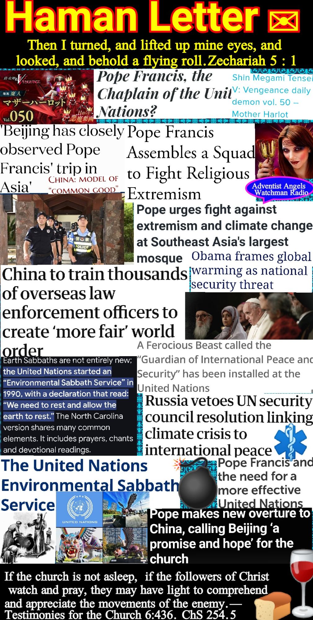 The whole world is to be stirred with enmity against Seventh-day Adventists, because they will not yield homage to the papacy, by honoring Sunday, the institution of this antichristian power. It is the purpose of Satan to cause them to be blotted from the earth, in order that his supremacy of the world may not be disputed. Mar 217.2 – Mar 217.3