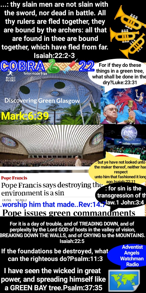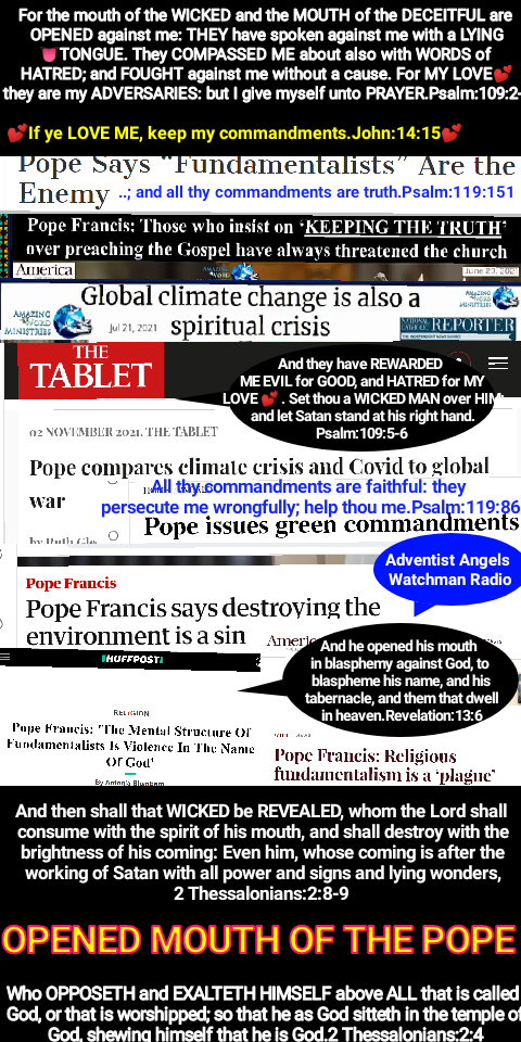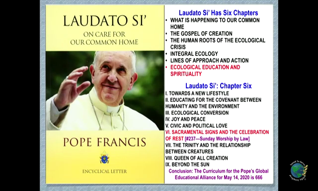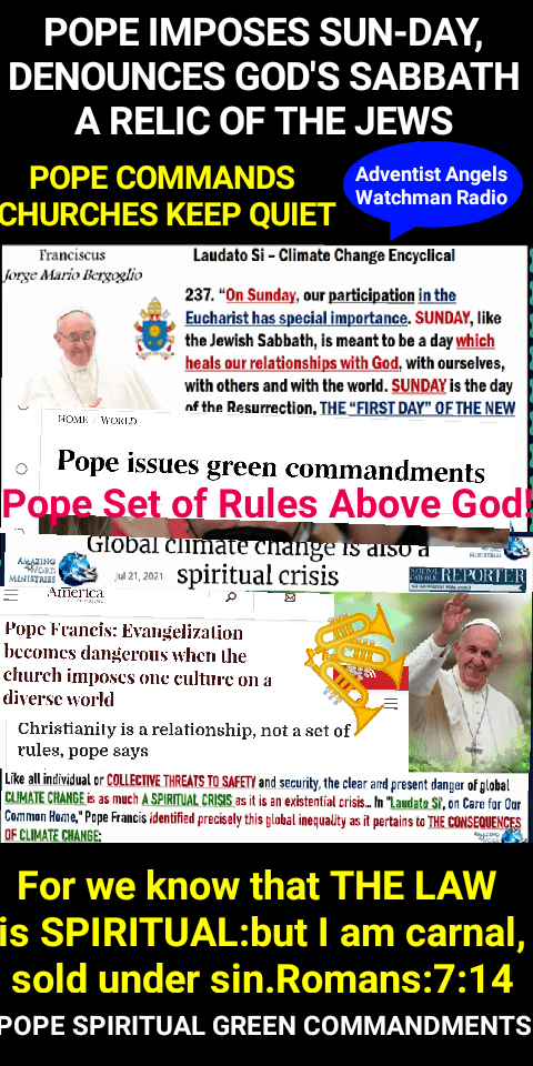 Pope Francis has gone a step further to give the green Commandments as Jesus Christ gave them during creation and gave the Seventh Day Sabbath. The papacy has given the first day of the week, Sun-day in rebellion against The Prince of Peace, Jesus Christ The Son of The Most High God.