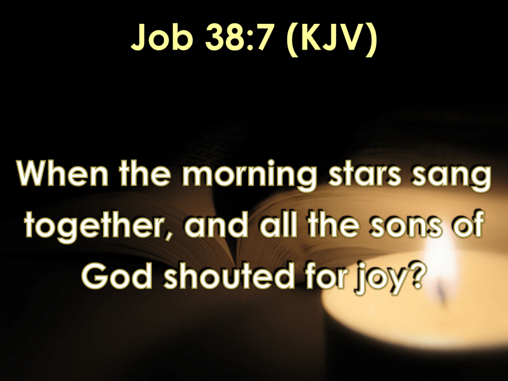 So angels who were created first were witnessing how God was creating man and all earthly elements as we shall witness God recreating the world through Jesus Christ. When the Pope calls Stone brothers and sisters, he means we God will be committing murder in re-creating which is high blasphemy as revelation 13:1-4 says about the papacy.Praise ye the LORD. Praise ye the LORD from the heavens: praise him in the heights. Praise ye him, all his angels: praise ye him, all his hosts. Praise ye him, sun and moon: praise him, all ye stars of light. Praise him, ye heavens of heavens, and ye waters that be above the heavens. Let them praise the name of the LORD: for he commanded, and they were created. He hath also stablished them for ever and ever: he hath made a decree which shall not pass. Praise the LORD from the earth, ye dragons, and all deeps: Fire, and hail; snow, and vapours; stormy wind fulfilling his word: Mountains, and all hills; fruitful trees, and all cedars: Beasts, and all cattle; creeping things, and flying fowl: Psalm:148:1-10Beasts, and all cattle; creeping things, and flying fowl: Kings of the earth, and all people; princes, and all judges of the earth: Both young men, and maidens; old men, and children: Let them praise the name of the LORD: for his name alone is excellent; his glory is above the earth and heaven. He also exalteth the horn of his people, the praise of all his saints; even of the children of Israel, a people near unto him. Praise ye the LORD. Psalm:148:10-14