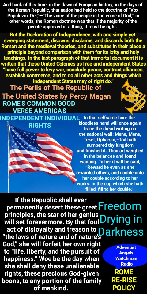 A well-known writer speaks thus of the attitude of the papal hierarchy as regards freedom of conscience, and of the perils which especially threaten the United States from the success of her policy: