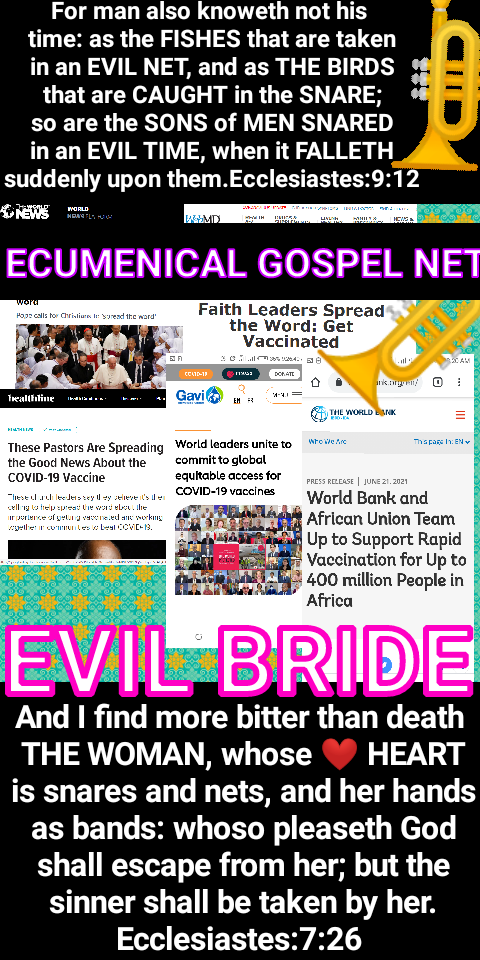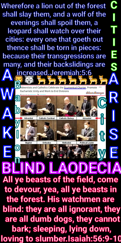 The Ecumenical Tsunami Movement of churches in the land. A time of trouble is eminent to eliminate those who cannot join them. Nation uniting with Nation
