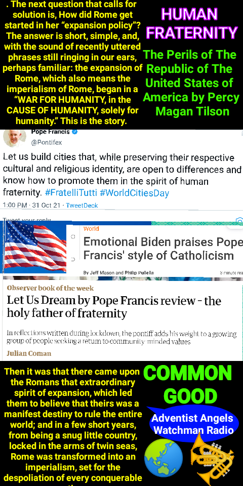 The most disturbing thing about this is when they claim that in order to stop wars and conflicts, diverse belief systems must be united and that there can be no church divisions. To put it another way, these political wars exist because we are not one. The Pope’s universal fraternity has not been accepted by us. And the longer the churches are separated, the worse these political conflicts will get. #sda #adventist #adventista
