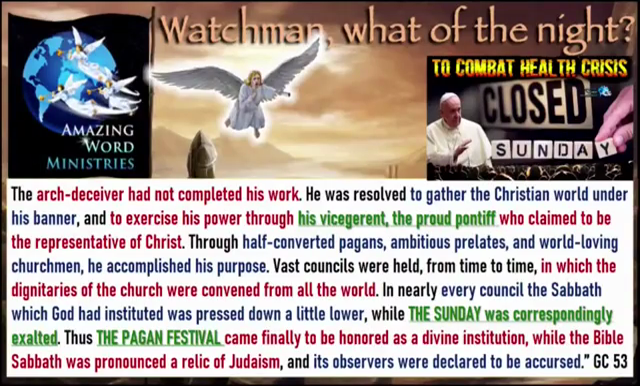 In this time of prevailing iniquity, the Protestant churches that have rejected a “Thus saith the Lord,” will reach a strange pass. They will be converted to the world. In their separation from God, they will seek to make falsehood and apostasy from God the law of the nation. They will work upon the rulers of the land to make laws to restore the lost ascendency of the man of sin, who sits in the temple of God, showing himself that he is God. The Roman Catholic principles will be taken under the protection of the state. The protest of Bible truth will no longer be tolerated by those who have not made the law of God their rule of life.