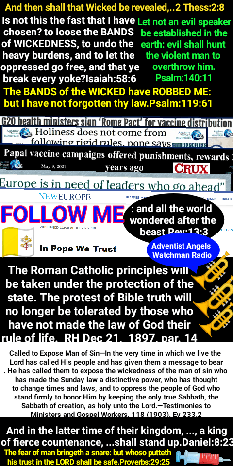 The archdeceiver had not completed his work. He was resolved to gather the Christian world under his banner and to exercise his power through his vicegerent, the proud pontiff who claimed to be the representative of Christ. Through half-converted pagans, ambitious prelates, and world-loving churchmen he accomplished his purpose. Vast councils were held from time to time, in which the dignitaries of the church were convened from all the world. In nearly every council the Sabbath which God had instituted was pressed down a little lower, while the Sunday was correspondingly exalted. Thus the pagan festival came finally to be honored as a divine institution, while the Bible Sabbath was pronounced a relic of Judaism, and its observers were declared to be accursed.