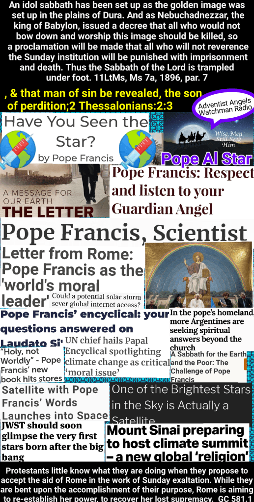John in the Revelation writes of the unity of those living on the earth to make void the law of God. “These have one mind, and shall give their power and strength unto the beast. These shall make war with the Lamb, and the Lamb shall overcome them; for he is Lord of lords, and King of kings; and they that are with him are called, and chosen, and faithful.” “And I saw three unclean spirits like frogs come out of the mouth of the dragon, and out of the mouth of the beast, and out of the false prophet.” Revelation 17:13, 14; 16:13. All who will exalt and worship the idol sabbath, a day that God has not blessed, help the devil and his angels with all the power of their God-given ability, which they have perverted to a wrong use. Inspired by another spirit which blinds their discernment, they cannot see that the exaltation of Sunday observance is entirely the institution of the Catholic church.