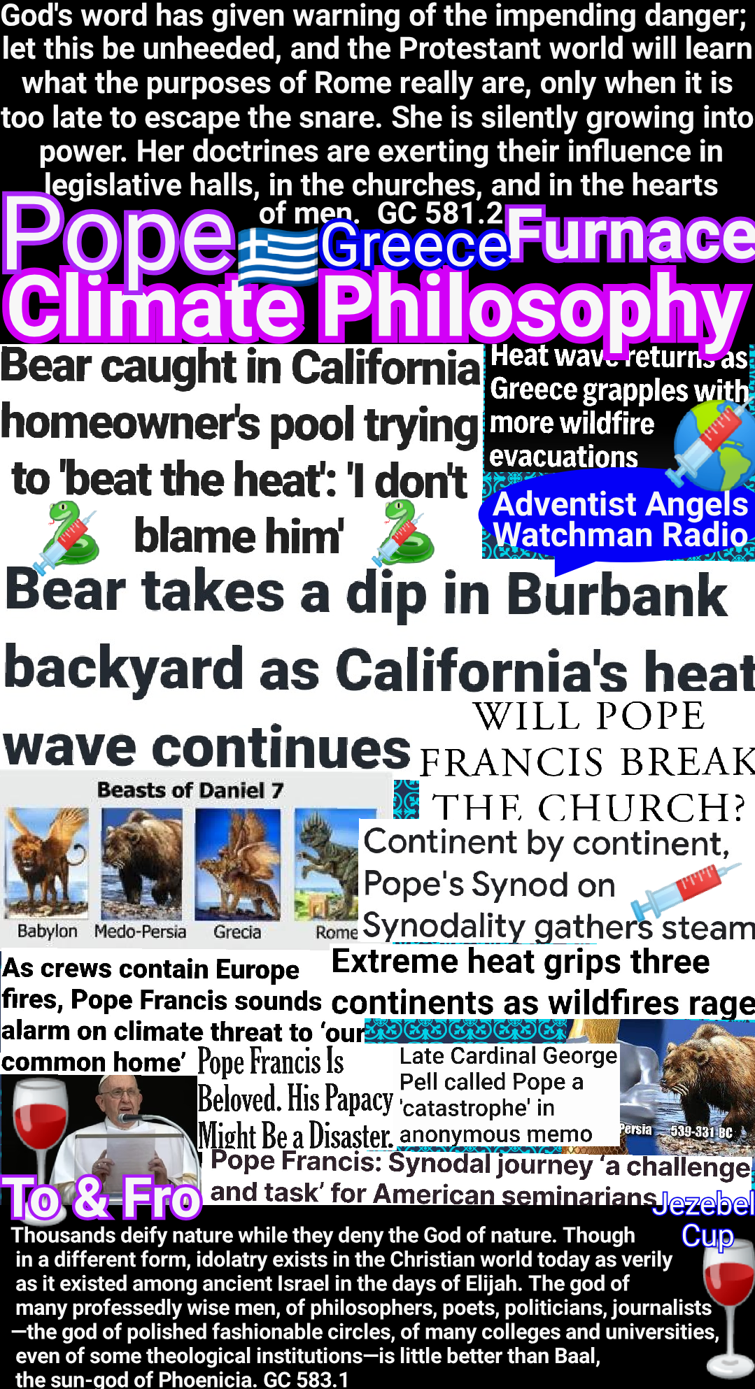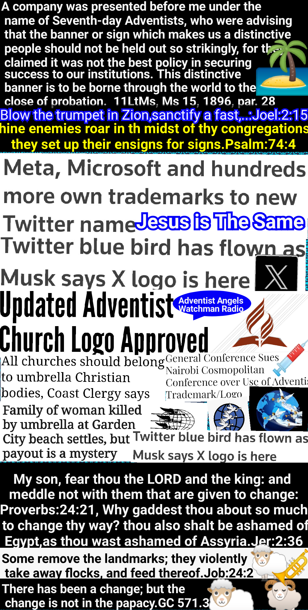 Heretofore those who presented the truths of the third angel’s message have often been regarded as mere alarmists. Their predictions that religious intolerance would gain control in the United States, that church and state would unite to persecute those who keep the commandments of God, have been pronounced groundless and absurd. It has been confidently declared that this land could never become other than what it has beenโthe defender of religious freedom. But as the question of enforcing Sunday observance is widely agitated, the event so long doubted and disbelieved is seen to be approaching, and the third message will produce an effect which it could not have had before. GC 605.2 – GC 605.3