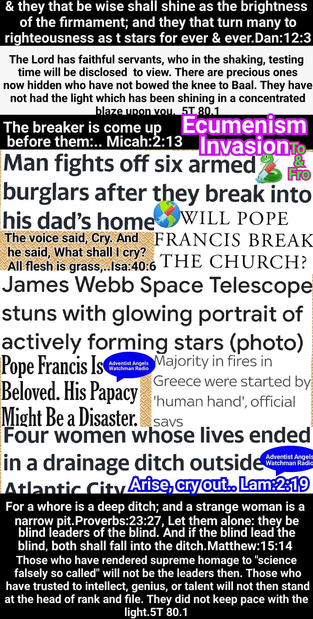 As the controversy extends into new fields and the minds of the people are called to God’s downtrodden law, Satan is astir. The power attending the message will only madden those who oppose it. The clergy will put forth almost superhuman efforts to shut away the light lest it should shine upon their flocks. By every means at their command they will endeavor to suppress the discussion of these vital questions. The church appeals to the strong arm of civil power, and, in this work, papists and Protestants unite. As the movement for Sunday enforcement becomes more bold and decided, the law will be invoked against commandment keepers. They will be threatened with fines and imprisonment, and some will be offered positions of influence, and other rewards and advantages, as inducements to renounce their faith. But their steadfast answer is: “Show us from the word of God our error”โthe same plea that was made by Luther under similar circumstances. Those who are arraigned before the courts make a strong vindication of the truth, and some who hear them are led to take their stand to keep all the commandments of God. Thus light will be brought before thousands who otherwise would know nothing of these truths.