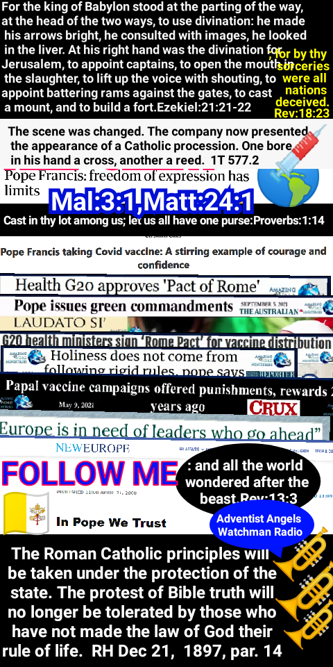 The prophecy of Revelation 13 declares that the power represented by the beast with lamblike horns shall cause “the earth and them which dwell therein” to worship the papacyโthere symbolized by the beast “like unto a leopard.” The beast with two horns is also to say “to them that dwell on the earth, that they should make an image to the beast;” and, furthermore, it is to command all, “both small and great, rich and poor, free and bond,” to receive the mark of the beast. Revelation 13:11-16. It has been shown that the United States is the power represented by the beast with lamblike horns, and that this prophecy will be fulfilled when the United States shall enforce Sunday observance, which Rome claims as the special acknowledgment of her supremacy. But in this homage to the papacy the United States will not be alone. The influence of Rome in the countries that once acknowledged her dominion is still far from being destroyed. And prophecy foretells a restoration of her power. “I saw one of his heads as it were wounded to death; and his deadly wound was healed: and all the world wondered after the beast.” Verse 3. The infliction of the deadly wound points to the downfall of the papacy in 1798. After this, says the prophet, “his deadly wound was healed: and all the world wondered after the beast.” Paul states plainly that the “man of sin” will continue until the second advent. 2 Thessalonians 2:3-8. To the very close of time he will carry forward the work of deception. And the revelator declares, also referring to the papacy: “All that dwell upon the earth shall worship him, whose names are not written in the book of life.” Revelation 13:8. In both the Old and the New World, the papacy will receive homage in the honor paid to the Sunday institution, that rests solely upon the authority of the Roman Church. GC 578.3
