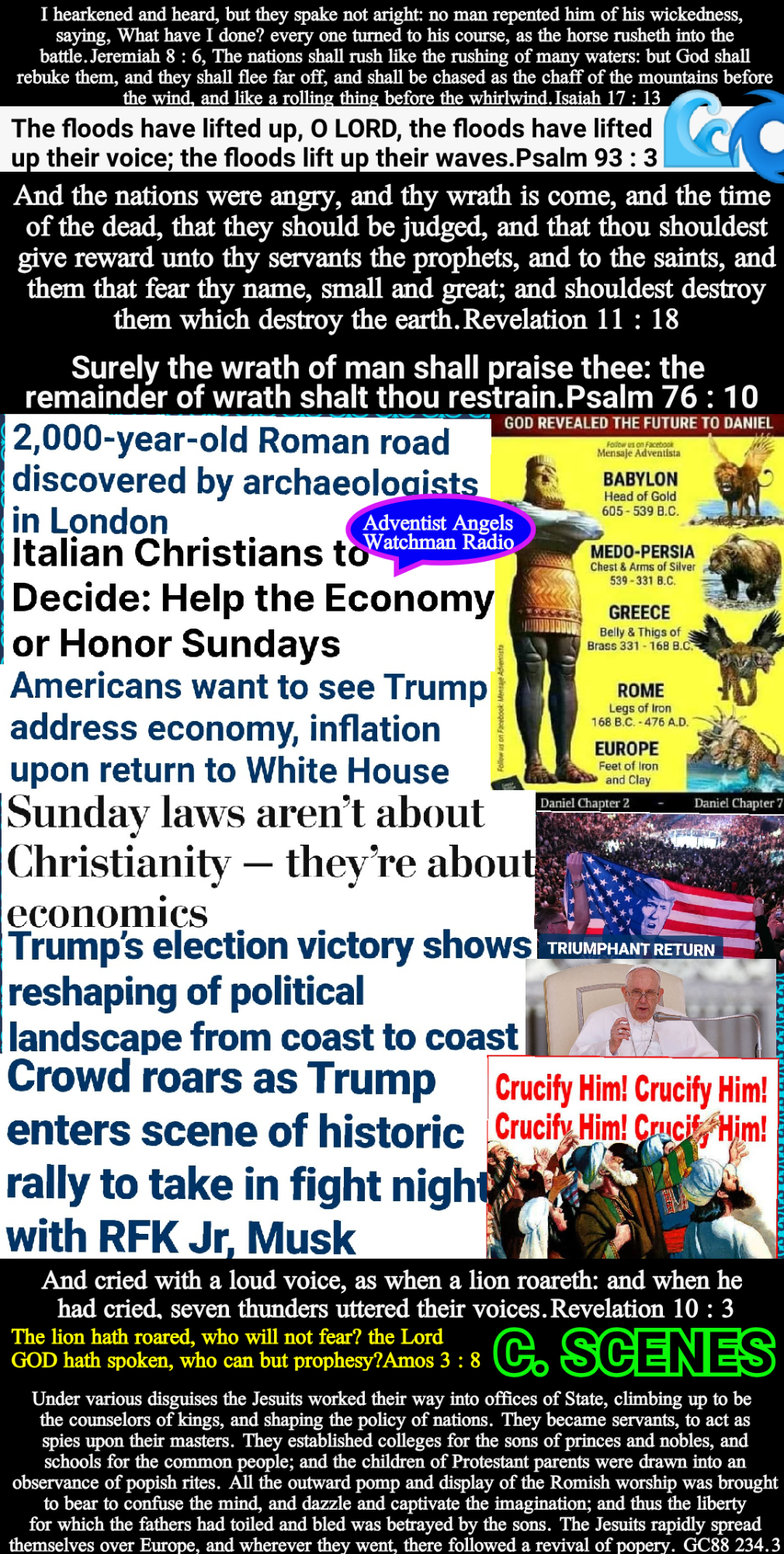 Everything in the world is in agitation. The signs of the times are ominous. Coming events cast their shadows before. The Spirit of God is withdrawing from the earth, and calamity follows calamity by sea and by land. There are tempests, earthquakes, fires, floods, murders of every grade. Who can read the future? Where is security? There is assurance in nothing that is human or earthly. Rapidly men are ranging themselves under the banner they have chosen. Restlessly they are waiting and watching the movements of their leaders. ST July 6, 1904, par. 1