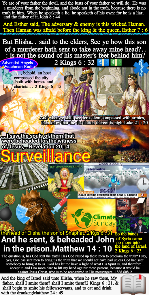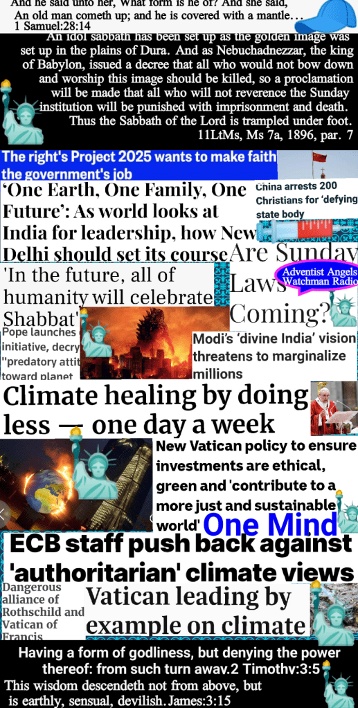 I saw that the two-horned beast 9 had a dragon mouth, and that his power was in his head, and that the decree would go out of his mouth. Then I saw the mother of harlots, that the mother was not the daughters, but separate and distinct from them. 10 She has had her day, and it is past, and her daughters, Protestant sects, were next to come on the stage and act out the same mind that the mother had when she persecuted the saints. I saw that as the mother has been declining in power the daughters have been growing, and soon they will exercise the power once manifested by the mother. I saw that the nominal churches and nominal Adventists, like Judas, would betray us to the Catholics, to obtain their influence to come against the saints. The saints will be an obscure people, but little known to the Catholics, but the church and nominal Adventists will know of our faith and customs, and will betray the saints and report them to the Catholics as those who disregard the institution of the pope—that is, they keep the Sabbath and disregard Sunday. Then the Catholics bid the Protestants to go forward and issue a decree that all who will not observe the first day of the week instead of the seventh shall be slain, 12 and the Catholics, whose numbers are large, will stand by the Protestants. The Catholics will give their power to the image of the beast, and then Protestants will work as their mother worked before them to destroy the saints. But before their decrees bring forth or bear fruit, the saints will be delivered by the voice of God. Then I saw that Jesus’ work in the sanctuary 13 was almost finished, almost finished, and after His work there is finished He will come to the door of the tabernacle, or door of the first apartment, and confess the sins of Israel upon the head of the scapegoat. 14 Then He will put on the garments of vengeance. Then the plagues 15 come upon the wicked, and they do not come until Jesus puts on the garments of vengeance and takes His seat upon the great white cloud. Then, while the plagues are falling, the scapegoat is being led away. He makes a mighty struggle to escape, but he is held fast by the hand that bears him away. If he should effect his escape, Israel would be destroyed (or slain). I saw that it would take time to bear him away into the land of forgetfulness after the sins were put upon his head. Jesus clothes Himself with the garments of vengeance and takes His place upon the great white cloud 16 before the plagues are poured out. The great white cloud, I saw, was not in the holy place but entirely separate from the holy and most holy, entirely separate from the sanctuary. 1EGWLM 244.1 – 1EGWLM 246.1