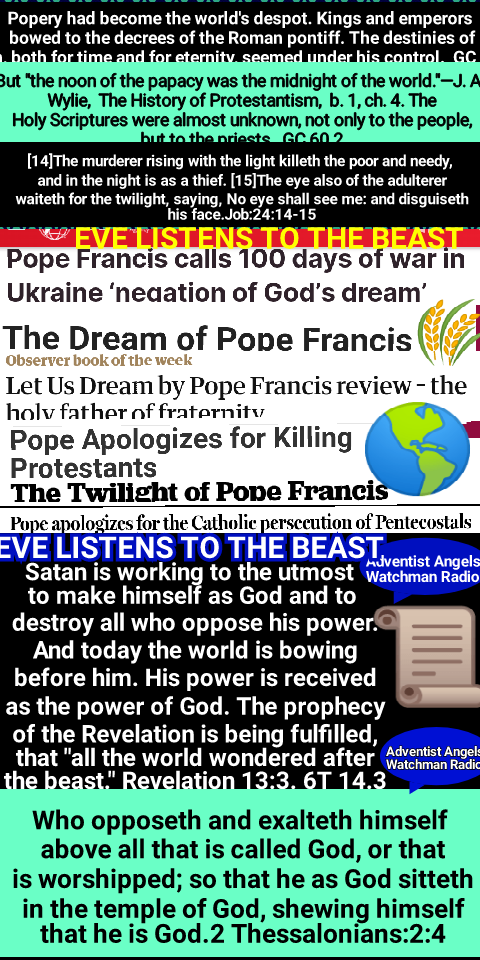 The prophecy of Revelation 13 declares that the power represented by the beast with lamblike horns shall cause “the earth and them which dwell therein” to worship the papacyโthere symbolized by the beast “like unto a leopard.” The beast with two horns is also to say “to them that dwell on the earth, that they should make an image to the beast;” and, furthermore, it is to command all, “both small and great, rich and poor, free and bond,” to receive the mark of the beast. Revelation 13:11-16. It has been shown that the United States is the power represented by the beast with lamblike horns, and that this prophecy will be fulfilled when the United States shall enforce Sunday observance, which Rome claims as the special acknowledgment of her supremacy. But in this homage to the papacy the United States will not be alone. The influence of Rome in the countries that once acknowledged her dominion is still far from being destroyed. And prophecy foretells a restoration of her power. “I saw one of his heads as it were wounded to death; and his deadly wound was healed: and all the world wondered after the beast.” Verse 3. The infliction of the deadly wound points to the downfall of the papacy in 1798. After this, says the prophet, “his deadly wound was healed: and all the world wondered after the beast.” Paul states plainly that the “man of sin” will continue until the second advent. 2 Thessalonians 2:3-8. To the very close of time he will carry forward the work of deception. And the revelator declares, also referring to the papacy: “All that dwell upon the earth shall worship him, whose names are not written in the book of life.” Revelation 13:8. In both the Old and the New World, the papacy will receive homage in the honor paid to the Sunday institution, that rests solely upon the authority of the Roman Church.