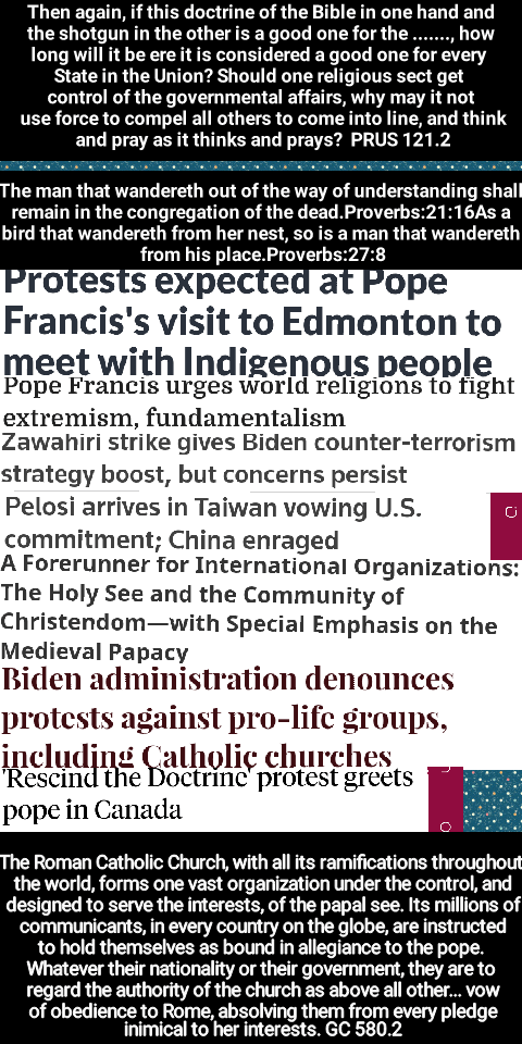 The Roman Catholic Church, with all its ramifications throughout the world, forms one vast organization under the control, and designed to serve the interests, of the papal see. Its millions of communicants, in every country on the globe, are instructed to hold themselves as bound in allegiance to the pope. Whatever their nationality or their government, they are to regard the authority of the church as above all other. Though they may take the oath pledging their loyalty to the state, yet back of this lies the vow of obedience to Rome, absolving them from every pledge inimical to her interests. History testifies of her artful and persistent efforts to insinuate herself into the affairs of nations; and having gained a foothold, to further her own aims, even at the ruin of princes and people. GC 580.2 – GC 580.3