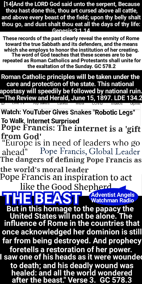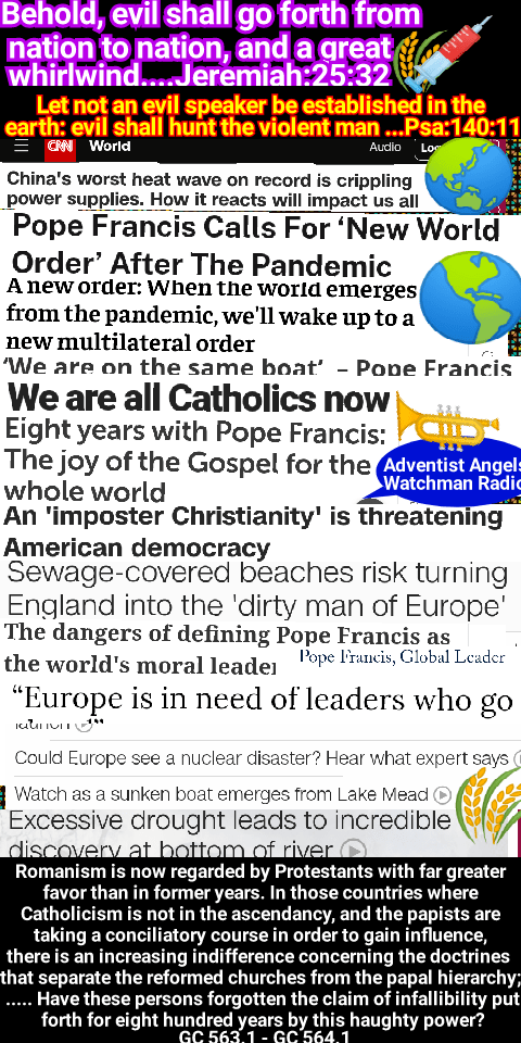 The Bible declares that before the coming of the Lord there will exist a state of religious declension similar to that in the first centuries. “In the last days perilous times shall come. For men shall be lovers of their own selves, covetous, boasters, proud, blasphemers, disobedient to parents, unthankful, unholy, without natural affection, trucebreakers, false accusers, incontinent, fierce, despisers of those that are good, traitors, heady, high-minded, lovers of pleasures more than lovers of God; having a form of godliness, but denying the power thereof.” 2 Timothy 3:1-5. “Now the Spirit speaketh expressly, that in the latter times some shall depart from the faith, giving heed to seducing spirits, and doctrines of devils.” 1 Timothy 4:1. Satan will work “with all power and signs and lying wonders, and with all deceivableness of unrighteousness.” And all that “received not the love of the truth, that they might be saved,” will be left to accept “strong delusion, that they should believe a lie.” 2 Thessalonians 2:9-11. When this state of ungodliness shall be reached, the same results will follow as in the first centuries. The wide diversity of belief in the Protestant churches is regarded by many as decisive proof that no effort to secure a forced uniformity can ever be made. But there has been for years, in churches of the Protestant faith, a strong and growing sentiment in favor of a union based upon common points of doctrine. To secure such a union, the discussion of subjects upon which all were not agreed—however important they might be from a Bible standpoint—must necessarily be waived. Charles Beecher, in a sermon in the year 1846, declared that the ministry of “the evangelical Protestant denominations” is “not only formed all the way up under a tremendous pressure of merely human fear, but they live, and move, and breathe in a state of things radically corrupt, and appealing every hour to every baser element of their nature to hush up the truth, and bow the knee to the power of apostasy. Was not this the way things went with Rome? Are we not living her life over again? And what do we see just ahead? Another general council! A world’s convention! Evangelical alliance, and universal creed!”—Sermon on “The Bible a Sufficient Creed,” delivered at Fort Wayne, Indiana, Feb. 22, 1846. When this shall be gained, then, in the effort to secure complete uniformity, it will be only a step to the resort to force. When the leading churches of the United States, uniting upon such points of doctrine as are held by them in common, shall influence the state to enforce their decrees and to sustain their institutions, then Protestant America will have formed an image of the Roman hierarchy, and the infliction of civil penalties upon dissenters will inevitably result. The beast with two horns “causeth commands all, both small and great, rich and poor, free and bond, to receive a mark in their right hand, or in their foreheads: and that no man might buy or sell, save he that had the mark, or the name of the beast, or the number of his name.” Revelation 13:16, 17. The third angel’s warning is: “If any man worship the beast and his image, and receive his mark in his forehead, or in his hand, the same shall drink of the wine of the wrath of God.” “The beast” mentioned in this message, whose worship is enforced by the two-horned beast, is the first, or leopardlike beast of Revelation 13—the papacy. The “image to the beast” represents that form of apostate Protestantism which will be developed when the Protestant churches shall seek the aid of the civil power for the enforcement of their dogmas. GC 444.1 – GC 445.2