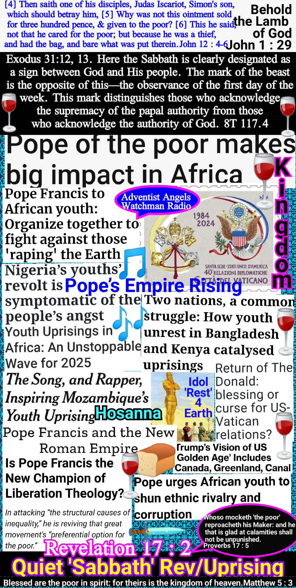 [12] Therefore they shall come and sing in the height of Zion, and shall flow together to the goodness of the LORD, for wheat, and for wine, and for oil, and for the young of the flock and of the herd: and their soul shall be as a watered garden; and they shall not sorrow any more at all. [13] Then shall the virgin rejoice in the dance, both young men and old together: for I will turn their mourning into joy, and will comfort them, and make them rejoice from their sorrow. [14] And I will satiate the soul of the priests with fatness, and my people shall be satisfied with my goodness, saith the LORD. [15] Thus saith the LORD; A voice was heard in Ramah, lamentation, and bitter weeping; Rahel weeping for her children refused to be comforted for her children, because they were not. [16] Thus saith the LORD; Refrain thy voice from weeping, and thine eyes from tears: for thy work shall be rewarded, saith the LORD; and they shall come again from the land of the enemy. [17] And there is hope in thine end, saith the LORD, that thy children shall come again to their own border.