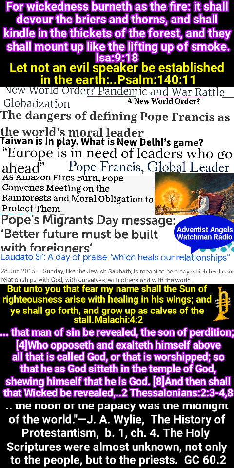 Satan’s policy in this final conflict with God’s people is the same that he employed in the opening of the great controversy in heaven. He professed to be seeking to promote the stability of the divine government, while secretly bending every effort to secure its overthrow. And the very work which he was thus endeavoring to accomplish he charged upon the loyal angels. The same policy of deception has marked the history of the Roman Church. It has professed to act as the vicegerent of Heaven, while seeking to exalt itself above God and to change His law. Under the rule of Rome, those who suffered death for their fidelity to the gospel were denounced as evildoers; they were declared to be in league with Satan; and every possible means was employed to cover them with reproach, to cause them to appear in the eyes of the people and even to themselves as the vilest of criminals. So it will be now. While Satan seeks to destroy those who honor God’s law, he will cause them to be accused as lawbreakers, as men who are dishonoring God and bringing judgments upon the world GC 591.1