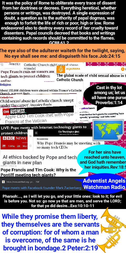Satan’s policy in this final conflict with God’s people is the same that he employed in the opening of the great controversy in heaven. He professed to be seeking to promote the stability of the divine government, while secretly bending every effort to secure its overthrow. And the very work which he was thus endeavoring to accomplish he charged upon the loyal angels. The same policy of deception has marked the history of the Roman Church. It has professed to act as the vicegerent of Heaven, while seeking to exalt itself above God and to change His law. Under the rule of Rome, those who suffered death for their fidelity to the gospel were denounced as evildoers; they were declared to be in league with Satan; and every possible means was employed to cover them with reproach, to cause them to appear in the eyes of the people and even to themselves as the vilest of criminals. So it will be now. While Satan seeks to destroy those who honor God’s law, he will cause them to be accused as lawbreakers, as men who are dishonoring God and bringing judgments upon the world.
