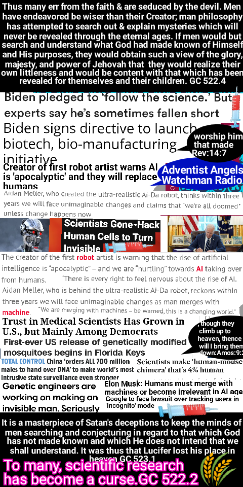 Satan works through the elements also to garner his harvest of unprepared souls. He has studied the secrets of the laboratories of nature, and he uses all his power to control the elements as far as God allows. GC 589.1 – GC 589.2